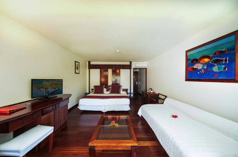 4 nights at the Manava Beach Resort and Spa in a Garden View Room, includes breakfast and dinner daily